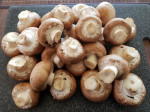 Die Pilze säubern (nicht unter Wasser!) und dann in Viertel teilen. Kleine Champignons einfach nur halbieren, damit sie nicht zu klein werden.