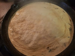 5. Die Champignons mit dem Mehl bestäuben und kurz anschwitzen. Die Geflügelbrühe und den Weißwein hinzugeben zu den Champignons geben und unterrühren, damit sich das Mehl mit der Brühe verbindet - ein wenig köcheln lassen, so dass der Alkohol verfliegen kann. Dann im Anschluss auch gleich die Schlagsahne angießen und so lange köcheln lassen bis eine cremige Soße entstanden ist.