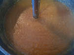 3. Lassen Sie die Suppe kurz aufkochen und mixen Sie dann die kalte Butter in Stückchen mit dem Schneidstab unter. So entsteht eine gute Bindung.