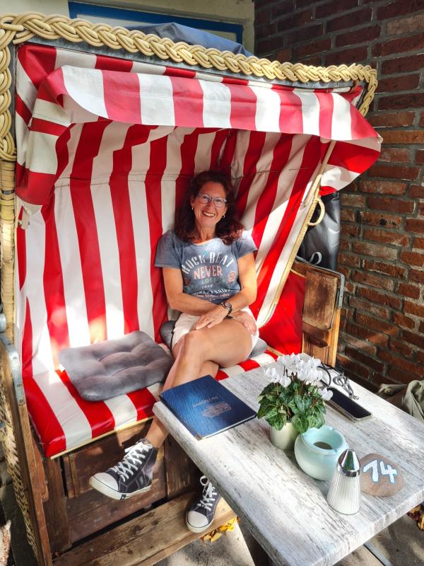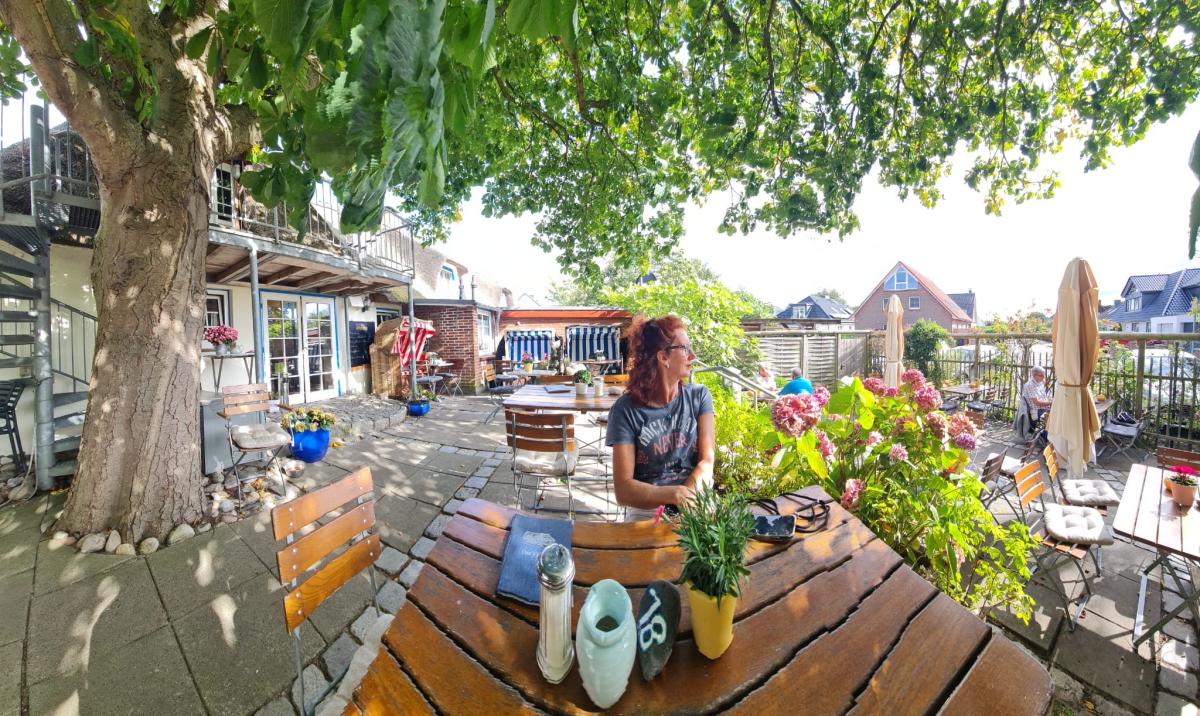 Das kleine historische, gemütliche Café mit sonnigem Kaffeegarten, direkt hinter dem Deich am Schönberger Strand.